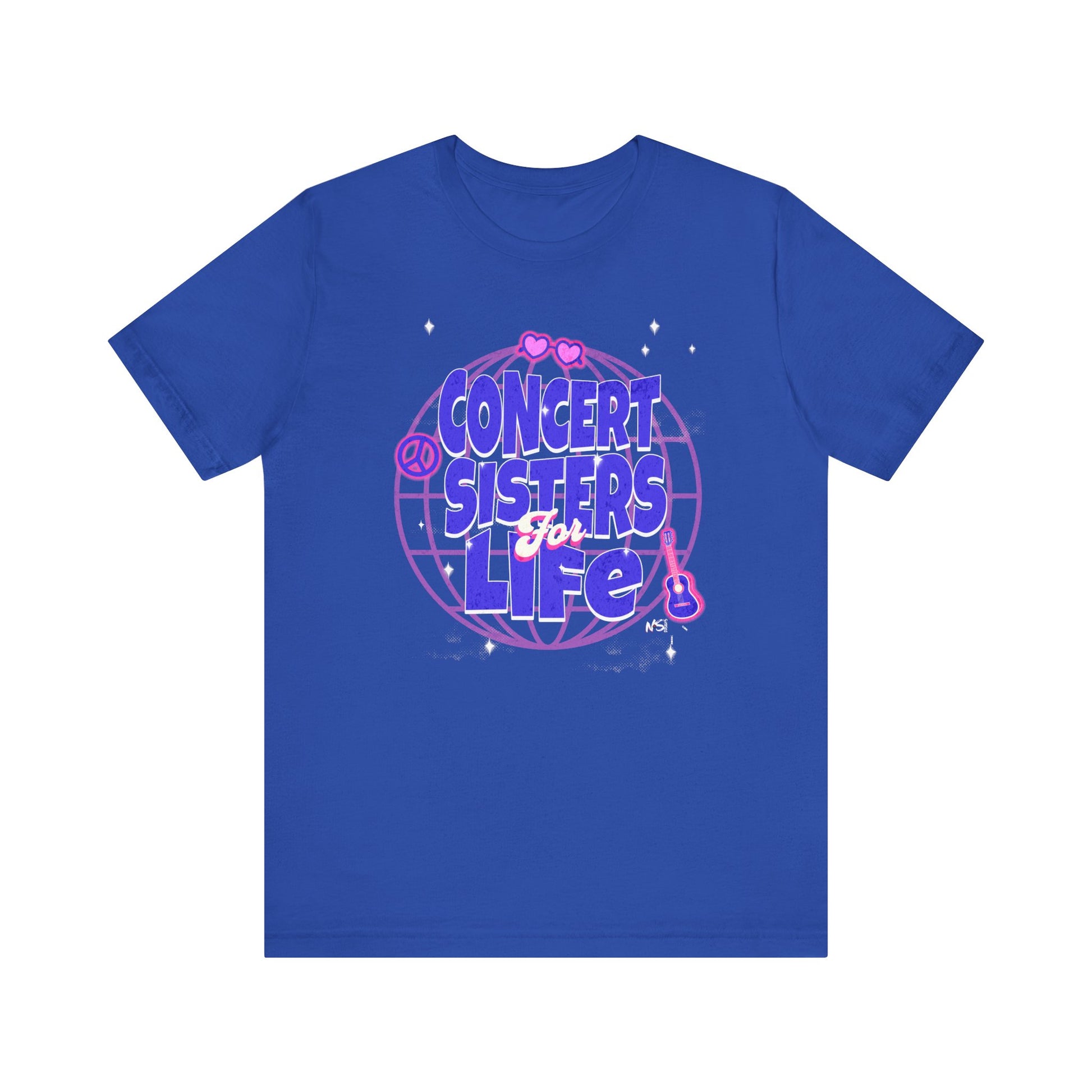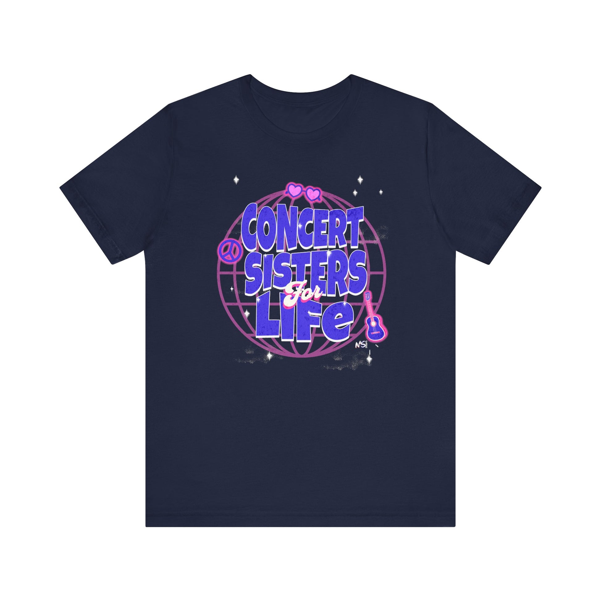 Celebrate your unbreakable bond with the "Concert Sisters for Life" T-shirt – the ultimate tee for music lovers and best friends who rock out together. Whether you're attending your next concert or simply reminiscing about unforgettable live shows, this shirt is a stylish way to show your love for music and sisterhood. Featuring bold typography and a design that speaks to your shared passion for live performances, this shirt is perfect for the ultimate concert crew. Made with soft, breathable fabric for all-day comfort, it’s a must-have for any music-loving duo. Grab yours and let the world know you and your concert sis are in it for life!