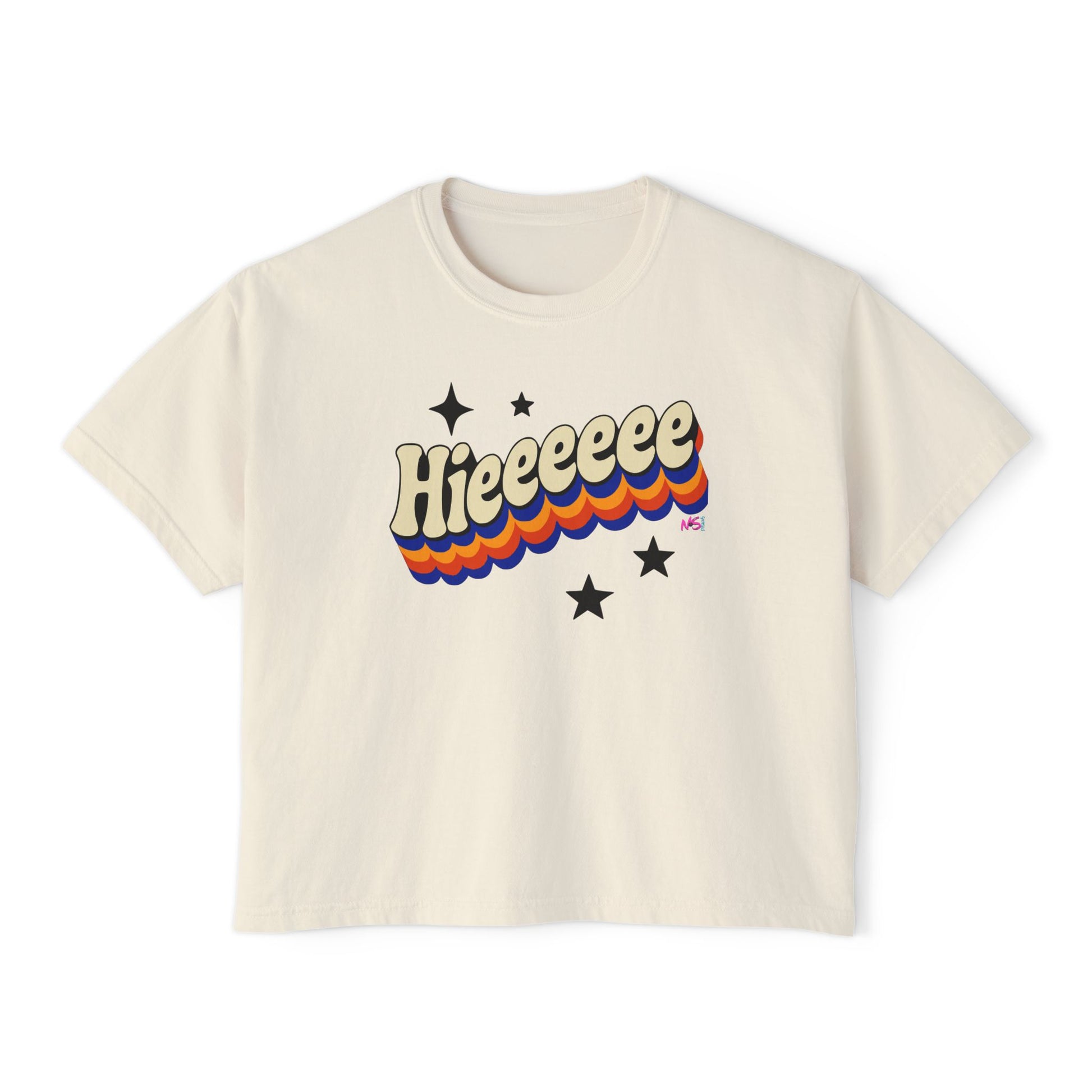 Retro Graphic Women's Boxy Short T- Shirt- Hieeeee, Funny, Trendy Tee